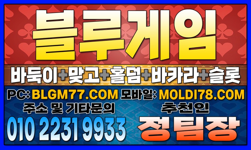 지금 바로 블루게임(바둑이,맞고,홀덤,슬롯,바카라)에서 검증된 온라인 게임을 시작하세요!정기적인 업데이트와 최신 정보 안내를 통해 항상 신뢰할 수 있는 서비스를 제공합니다. 소액 및 고액 금액에 관계없이 모두가 공평한 대우를 받으며, 타 업체 대비 높은 수익률을 기대할 수 있습니다.